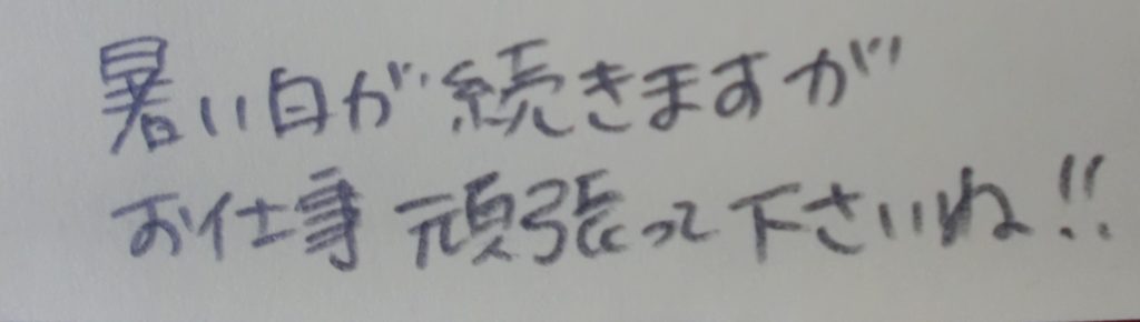 お会いするたびに楽しく会話させていただく事の多かったH様よりご返却のアンケートの中に、私個人あてにメッセージが同封されておりまして・・・