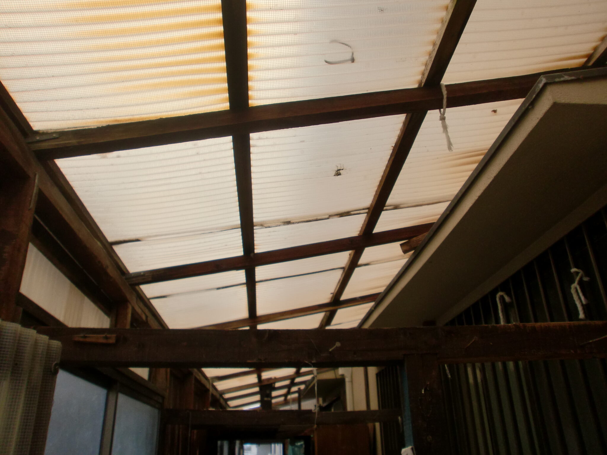 このような上部の波板を着工前に外して撤去しておかなければなりません。