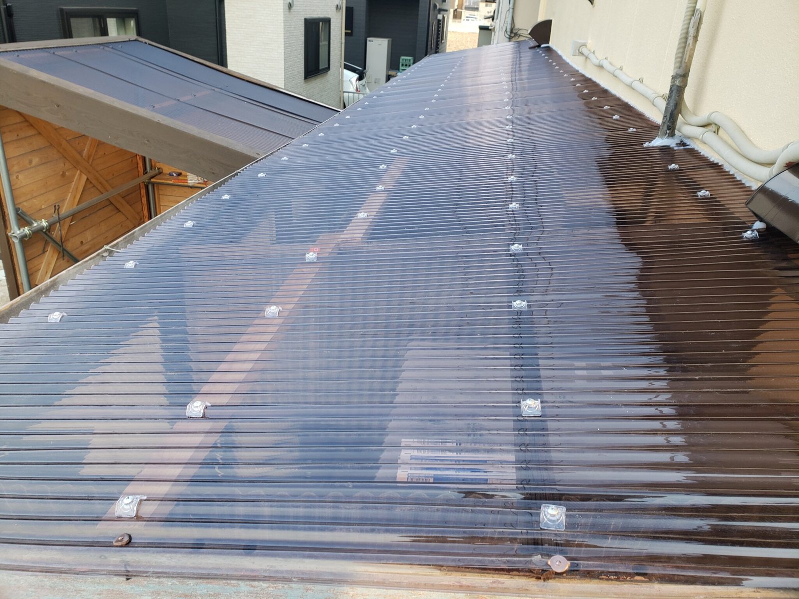 塗装が完了して足場を解体した後に、外しておいた波板を元通りに復旧させますが