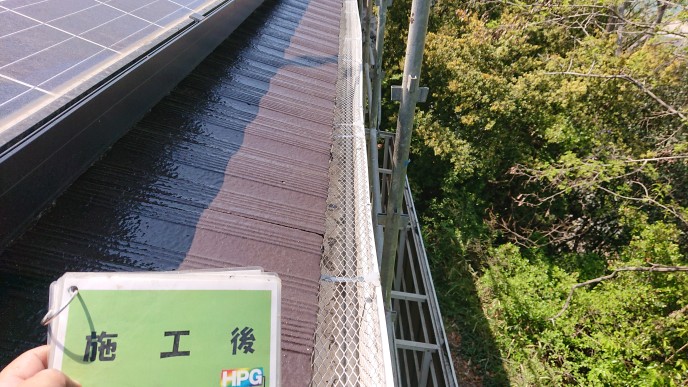 倉敷市の外壁塗装専門店ハウスペイントグループでは、塗装で足場を組んだ際に樋の中までしっかりと