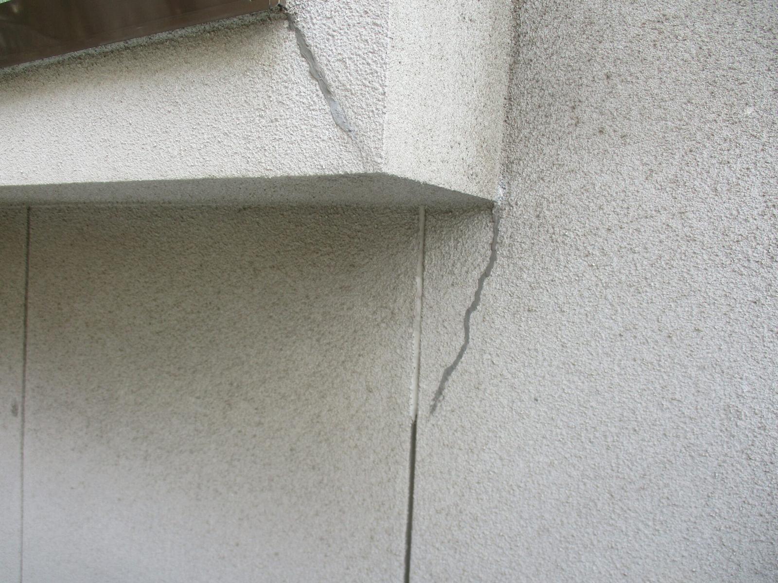 外壁の目地部分やサッシまわりには小さな**ひび割れ(クラック)**が確認されました。