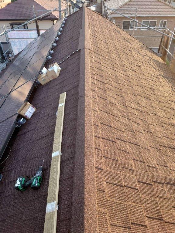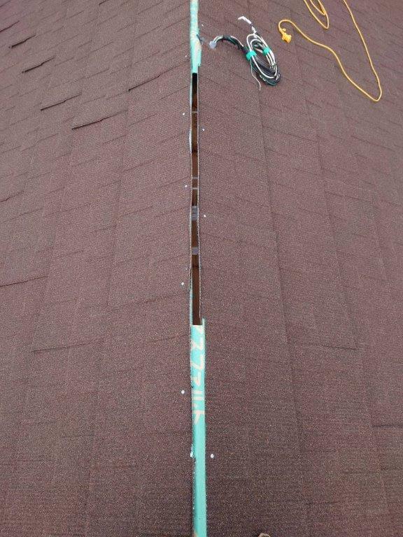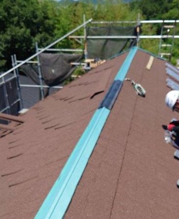 ケラバ板金を取り付け、棟板金を撤去します