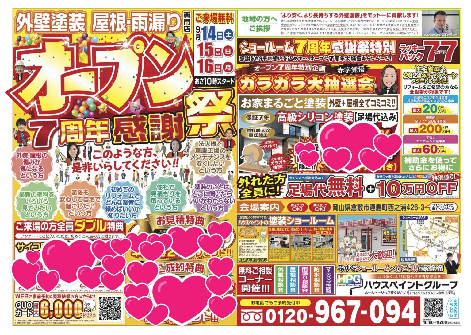 皆様に支えられ、倉敷市の屋根・外壁塗装専門店「ハウスペイントグループ」は、この度オープン7周年を迎えることができました!
