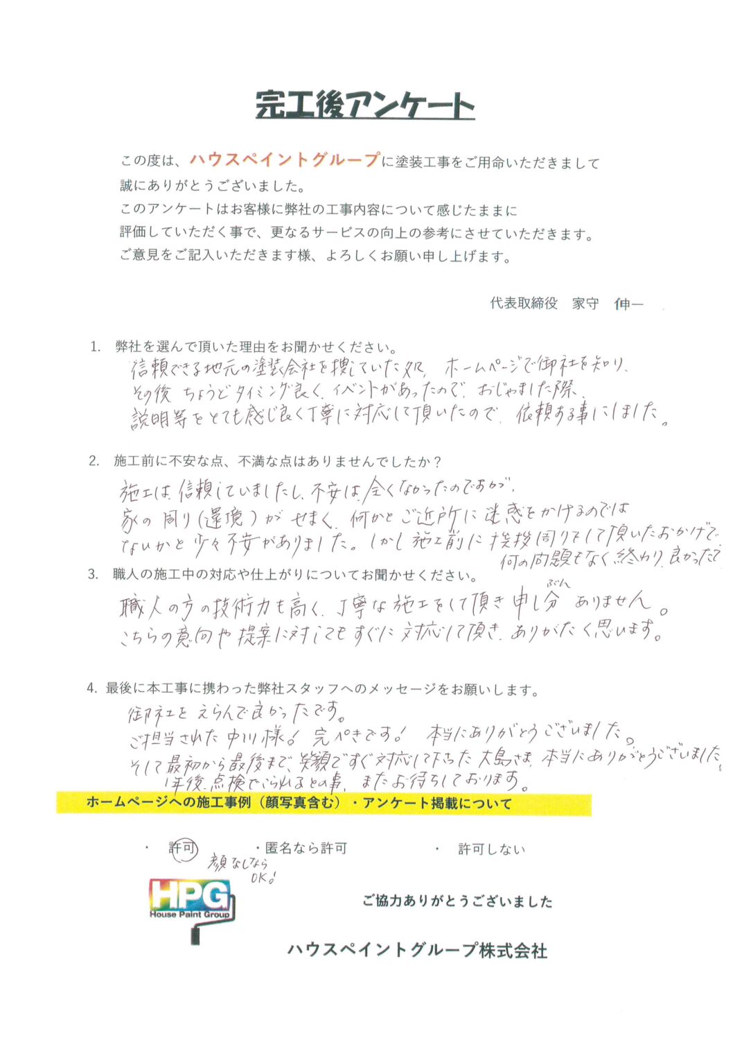 ハウスペイントグループは、100%資格者による高品質施工を強みに、これまで多くのご依頼をいただいております。現在、倉敷市・浅口市を中心に、里庄町、総社市、岡山市など、周辺エリアまで幅広く対応しております。外壁塗装・屋根塗装・防水工事など、住まいに関する塗装工事はお任せください。これからも地域の皆様に安心してご依頼いただけるよう、高品質・適正価格での施工をお約束いたします。まずはお気軽にご相談ください。