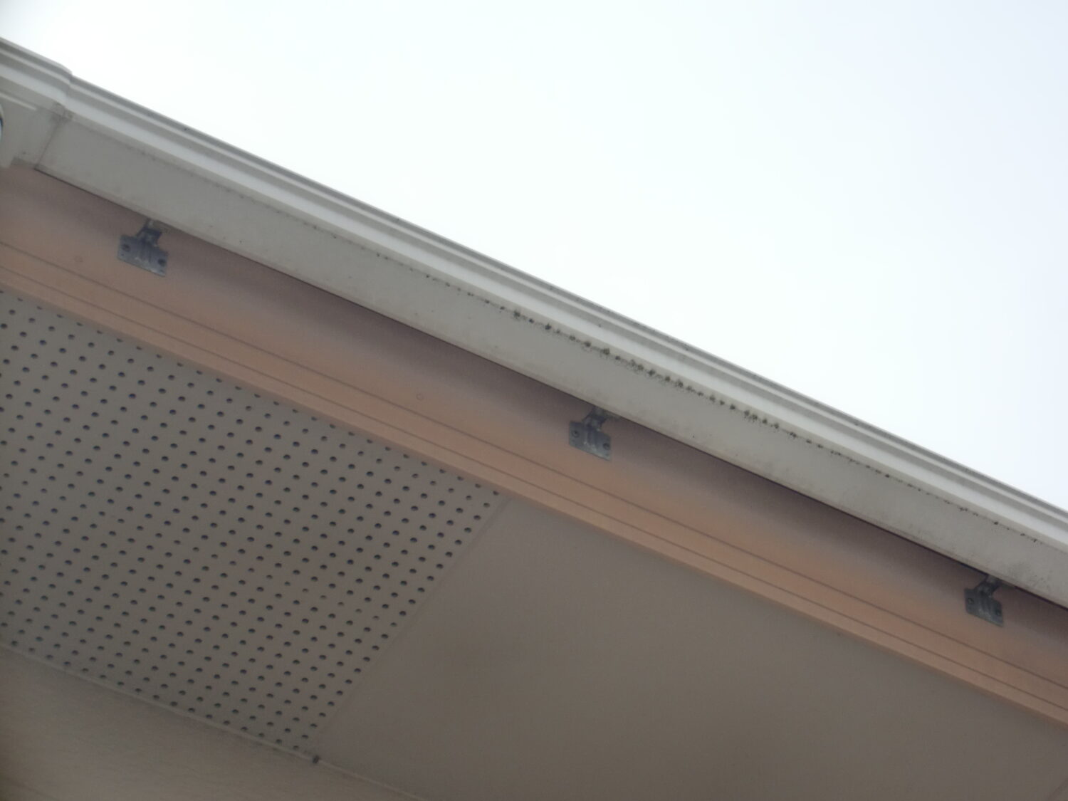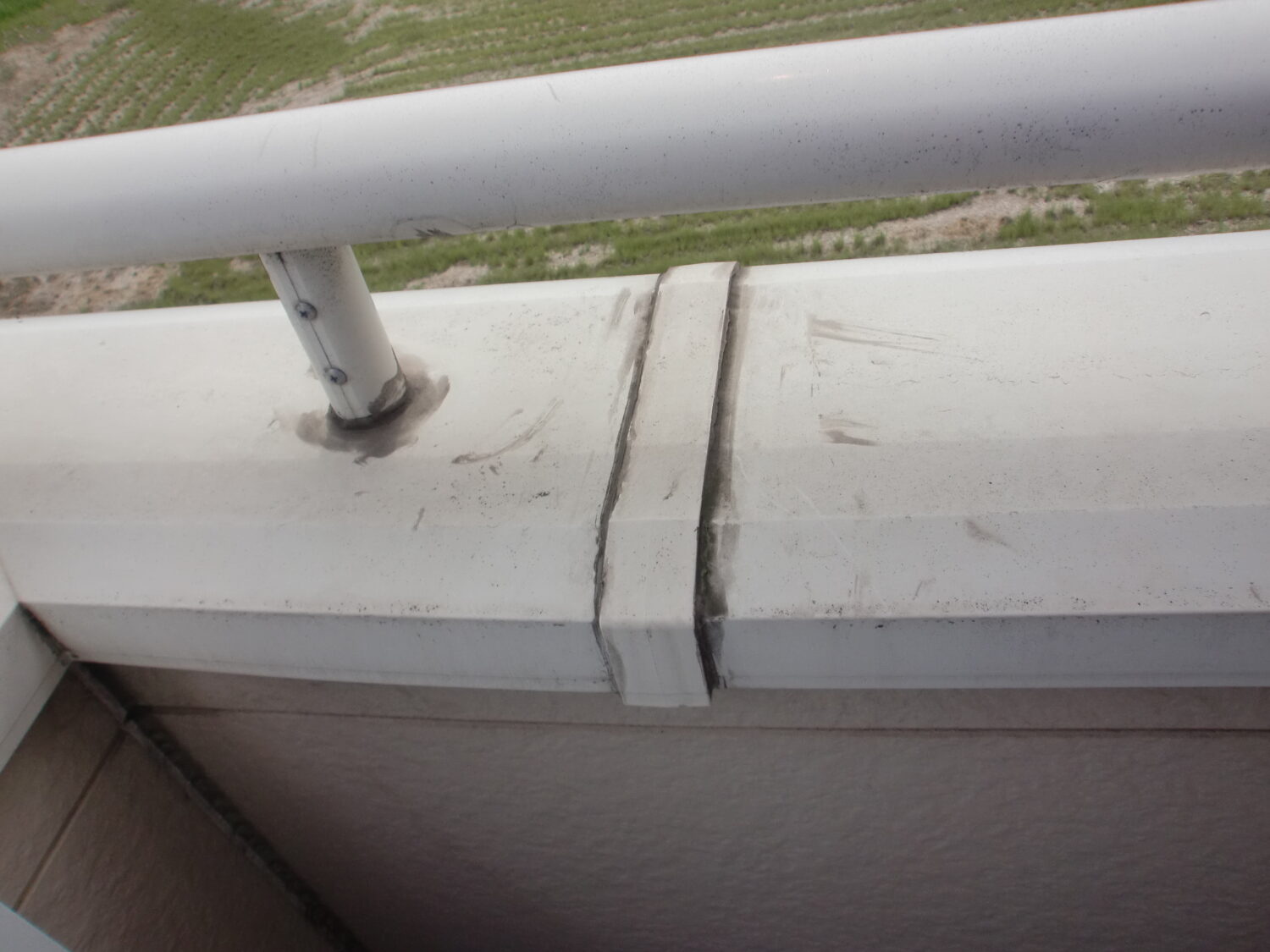 外壁シーリングの劣化が複数ありました 樋の表面に汚れや劣化がみられます バルコニー手摺の汚れも気になりますね