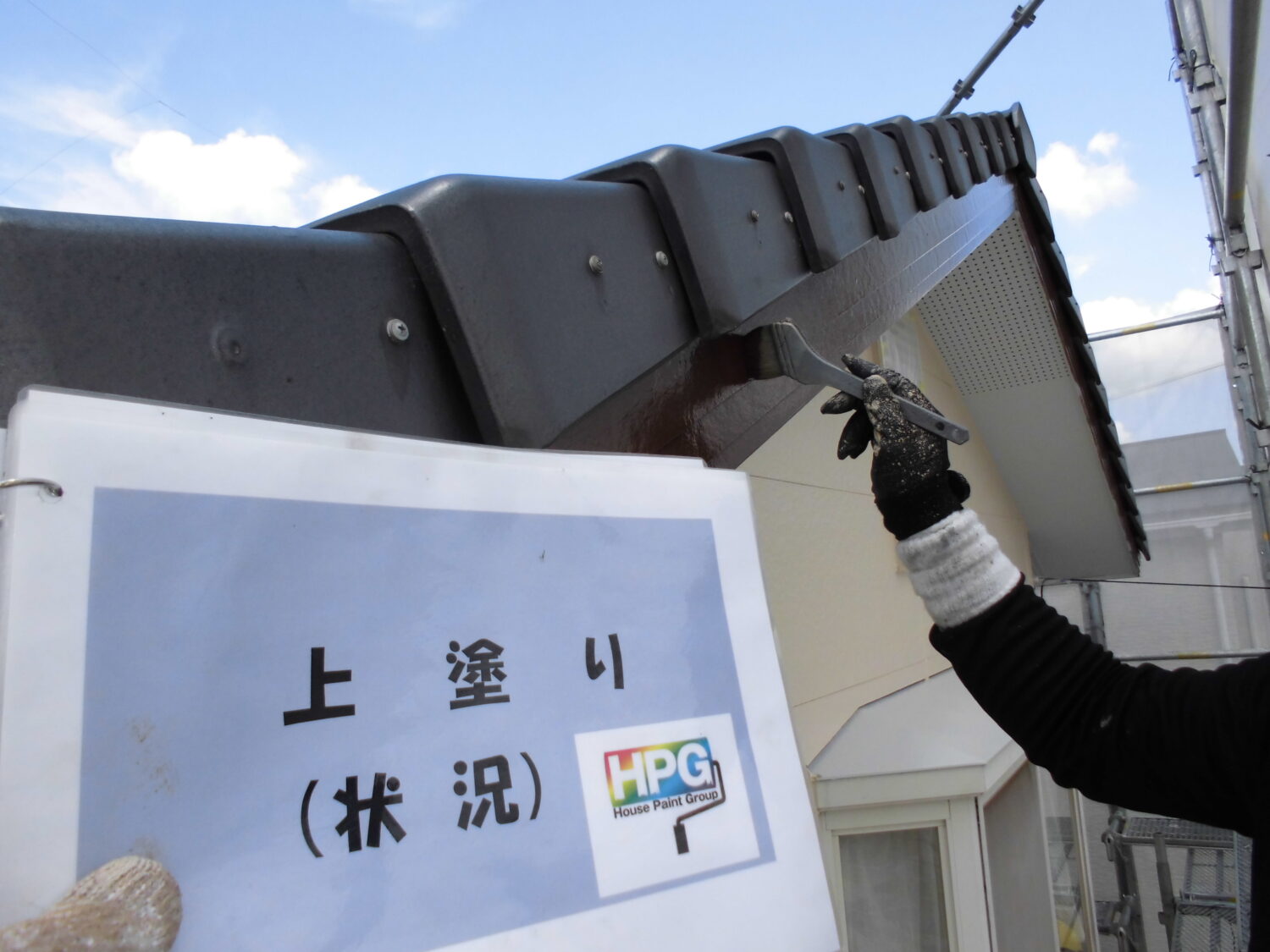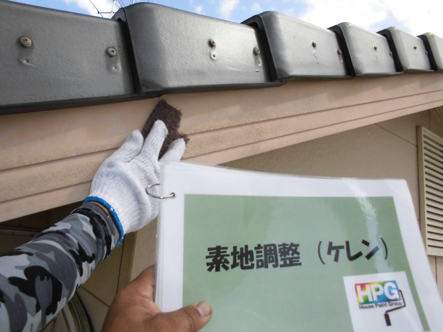 ポスト ポストはまず素地調整を行います 表面にあえて細かな傷をつけることで 塗料がより密着するのです さらに下塗りを塗布することで密着性が 一層高くなります さらに塗料を塗り重ねて完成です 手すり 手すりの表面に付着した汚れをとったり 細かな傷をつけたりして整えていきます 中塗り さらに上塗りで完成です 小庇鉄部 小庇鉄部も表面の汚れや古い塗膜を 除去するため素地を整えていきます 鉄部なので錆びないように下塗りで 錆止めを塗布しました 中塗り→上塗りで塗料を塗布し完成です 樋 樋は汚れやごみが溜まりやすいので 清掃作業は欠かせません 道具を使って隅々まで丁寧に汚れを除去 高圧洗浄で流してすっきりしました これで樋の詰まりを未然に防止です 樋も表面が汚れているようなので 素地調整を行い塗料を塗布していきます 小さめのローラーで丁寧に中塗りをし→ さらに上塗りをして塗膜を重ねながら 仕上げていきます 破風 破風の表面も古い塗膜や汚れを除去 するために素地調整をします 素地と塗料の密着を高めるために 下塗りを行い……→ 中塗りと上塗りで塗膜を2層塗り重ねて 仕上げていきます