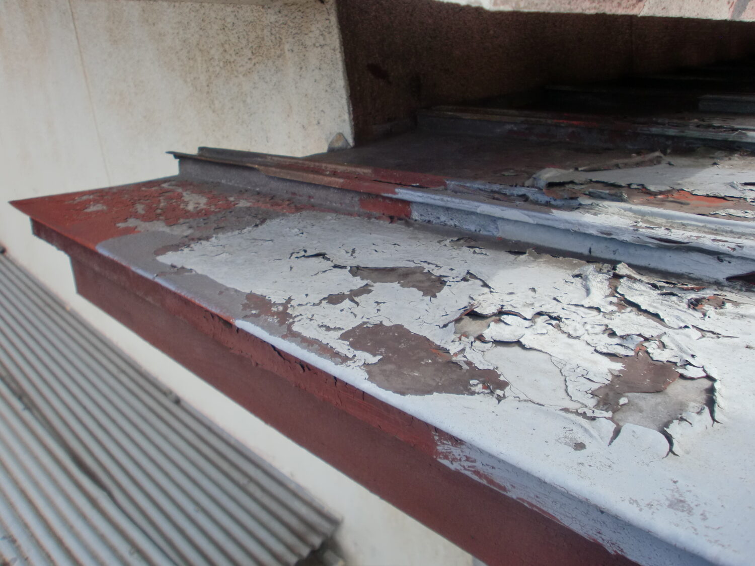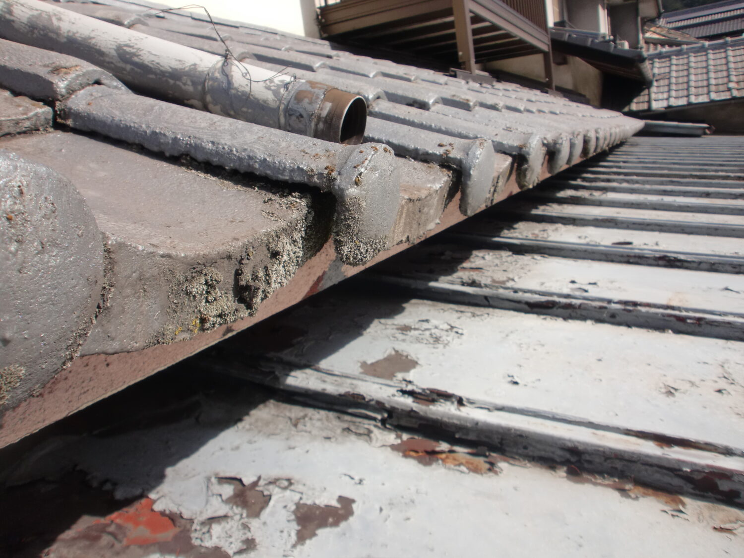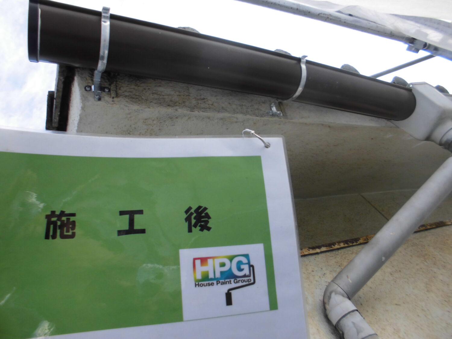 樋 樋の堆積物を放置すると雨水が流れず 詰まるので手作業で丁寧に清掃します 樋のバンドが錆びて取れていたので→ 新しいバンドをつけて しっかりと樋を支えます 無事な金具には錆止めを塗布 樋が破損していました→ 金具とともに樋を補修しました これで雨水の排水経路はばっちりです 縦向きの樋の金具にも錆止めを塗布 樋に新しい色が塗布されました 中塗り→上塗りで2回塗り重ね 艶良く綺麗になりました 瓦ぼう 施工前です。全体にわたる塗膜剥がれと 表面の経年劣化が顕著です 素地調整で表面の汚れや剥がれをとり しっかりと下塗りをしました 中塗り→上塗りと塗り重ね 瓦ぼうが見違えるほど綺麗になりました