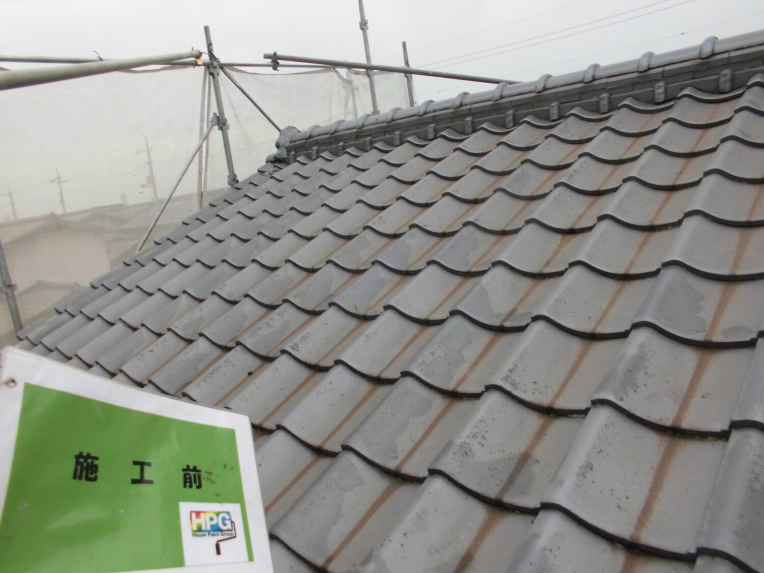 【屋根施工前】 【屋根施工後】 高圧洗浄を行い汚れを流していきます 遮熱性の塗料でを下塗りをしています 今回は高い光沢性と耐候性に優れた ルーフマイルドSiを塗布しました