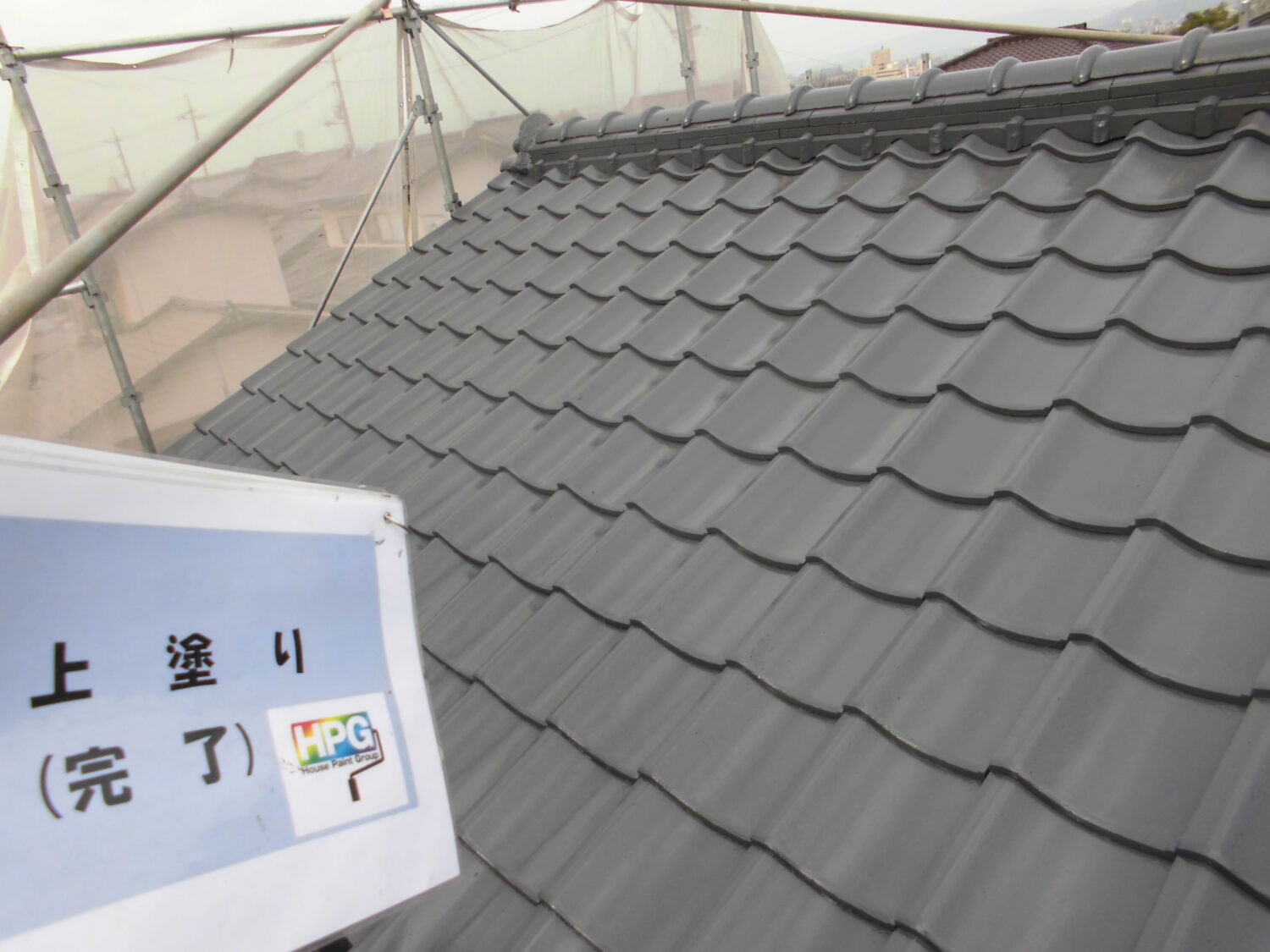 | 使用塗料 | 使用塗料:屋根・水谷ペイント ルーフマイルドSi(弱溶剤2液型シリコン塗料)(ナチュラルグレー) |