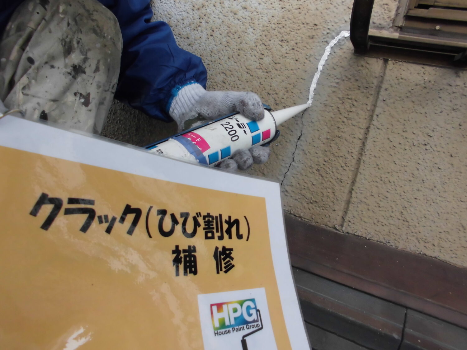 【外壁施工前】 【外壁施工後】 外壁はまず高圧洗浄により 長年の汚れを落としていきます ひび割れを放置すると雨水が入り 建物の劣化を早める原因となります。 シーリング剤で隙間を埋めましょう 2回に分けて下塗りを行い 中塗り→上塗りと塗り重ねることで 大変綺麗に仕上がります
