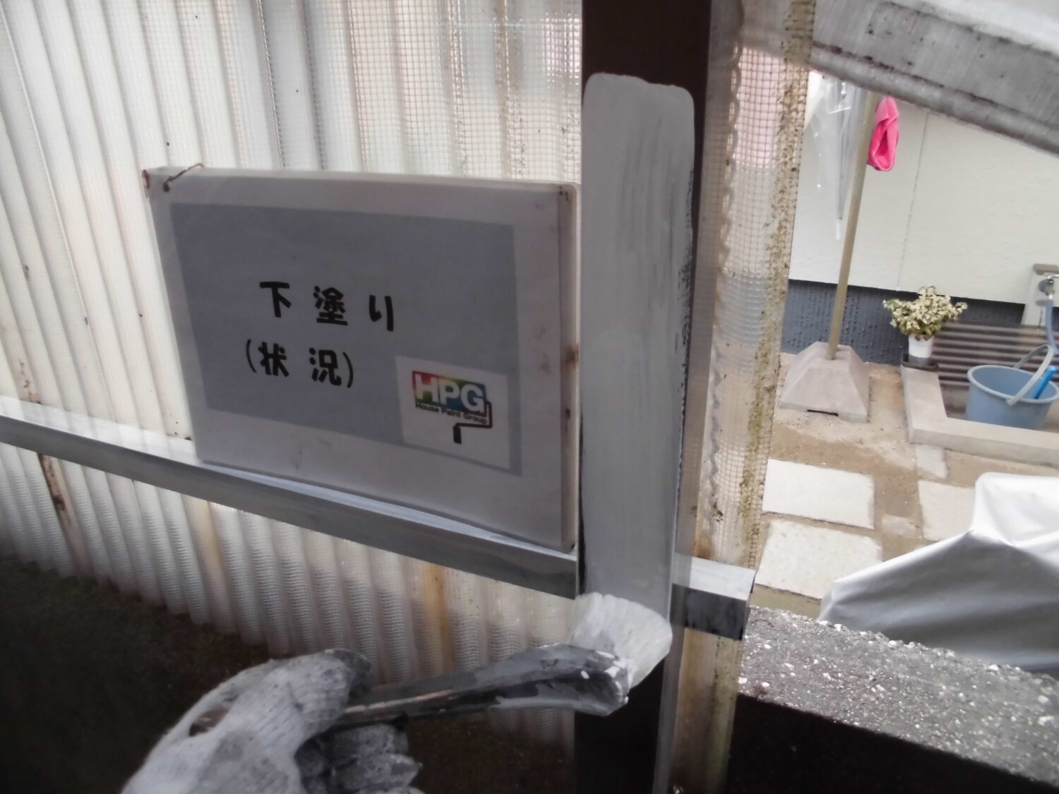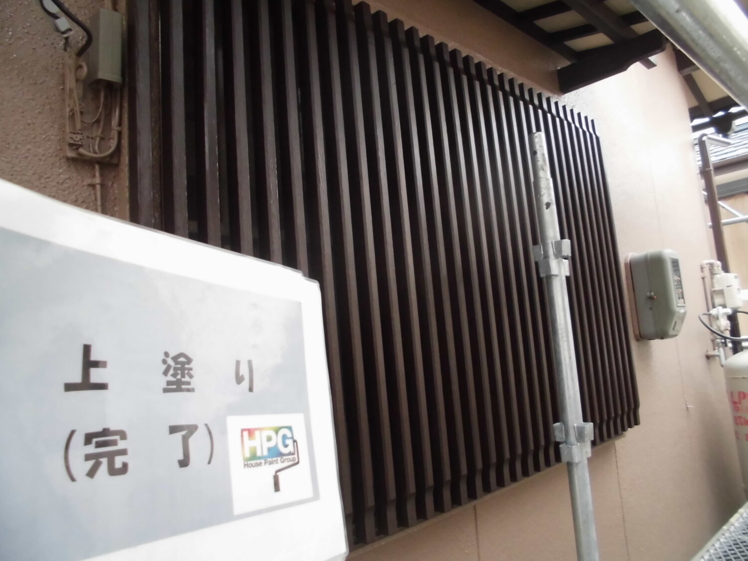 樋 樋に堆積物が溜まっているようです 放置すると雨水が流れず詰まるので 手作業で丁寧に清掃します 清掃が終わると素地調整を行います 細かく傷をつけることで塗料の 密着がよくなります 中塗り→上塗りで樋の表面が コーティングされました タキロン枠 施工前 素地調整後、まずは錆び止めを塗布 中塗り→上塗りとしっかり3層塗り重ね 完成です 雨戸 雨戸の施工前です 長年の風雨に耐えた雨戸を蘇らせます 素地調整で細かな傷をつけたあと 全体に錆止めを塗布しました 中塗り→上塗りと塗り重ねることで 全体が艶良く仕上がりました 基礎 基礎の素地調整施工後です 下部に塗膜剥がれがみられます 基礎は素地に合わせて防カビ塗料を 塗布します 外壁にぴったりの色味に仕上がりました 軒天 軒天は経年劣化により変色しています 素地調整をしっかりして 中塗り→上塗りと塗布していきます 木部と色分けを行い仕上げています 木部格子 木部も素地調整をしっかりして 木目に塗料をつけやすくします 木部専用下塗りを塗布後 塗料を塗り重ねます 上塗りで仕上げをしたら完成です 外壁の色と大変よく合っています 小庇鉄部 小庇の素地調整の様子です 色あせていますね 小庇は鉄部なのでしっかりと錆止めをし その上から塗料を塗布していきます 錆止め後、塗料の2回塗りです 表面が見違えるほど綺麗になりました