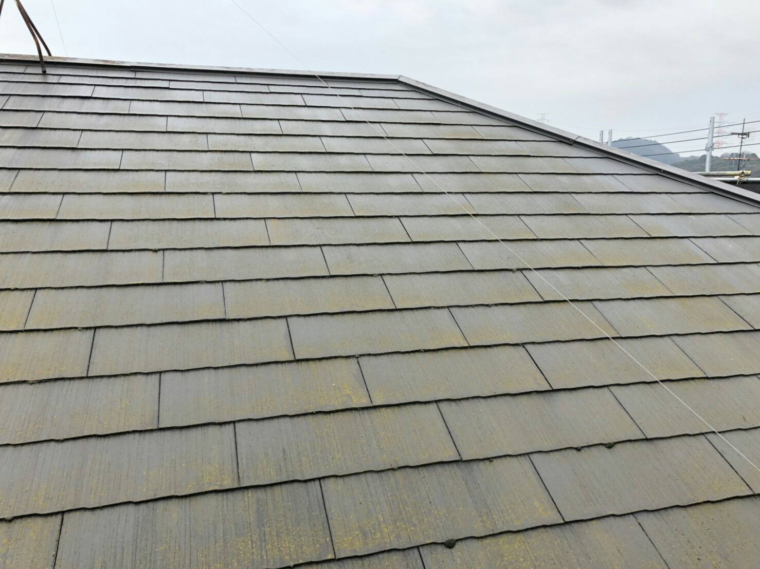 【屋根施工前】 【屋根施工後】 表面に付着したコケや経年劣化により 剥がれた塗膜を洗い流していきます 残った汚れは手作業で素地調整します 鉄部には錆止め塗料を塗布しています 下地に合わせて塗料の選定は大切ですね 遮熱塗料で今年の夏が楽しみです