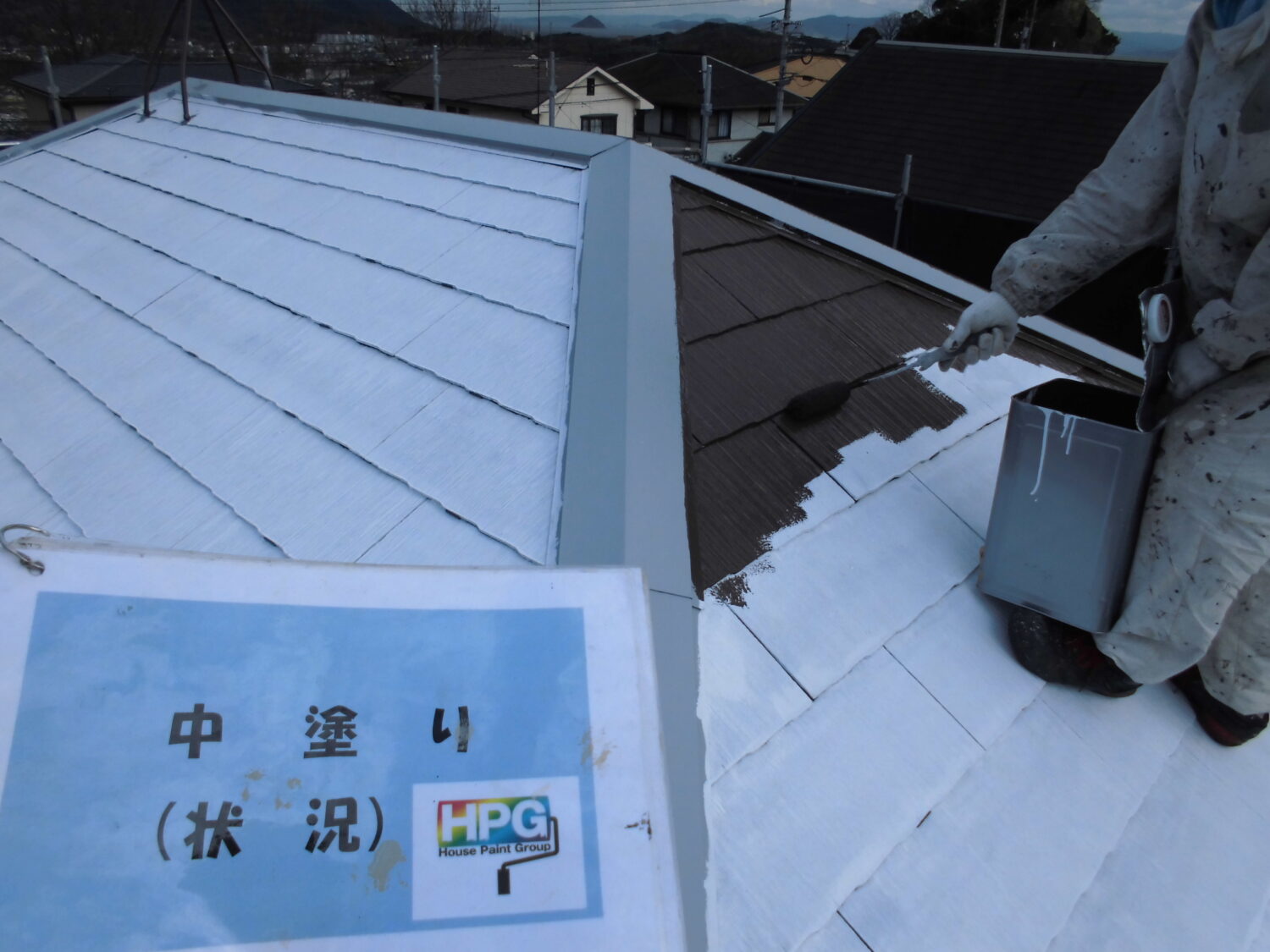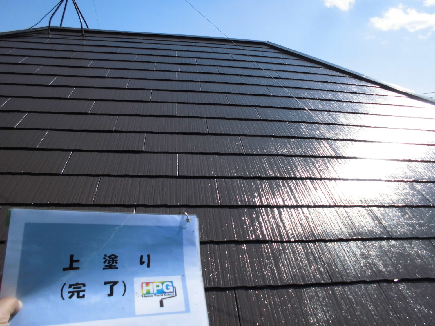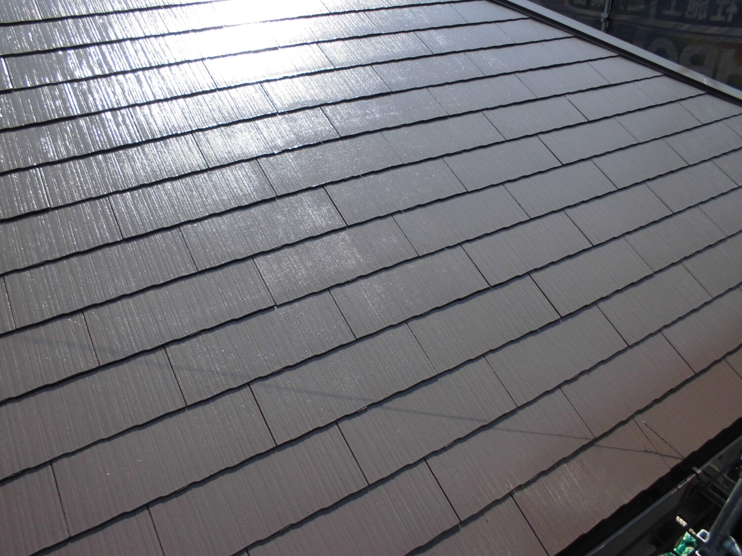 | 使用塗料 | 使用塗料:屋根 快適サーモSi(弱溶剤2液型遮熱シリコン塗料)(サーモダンケルブラウン) |