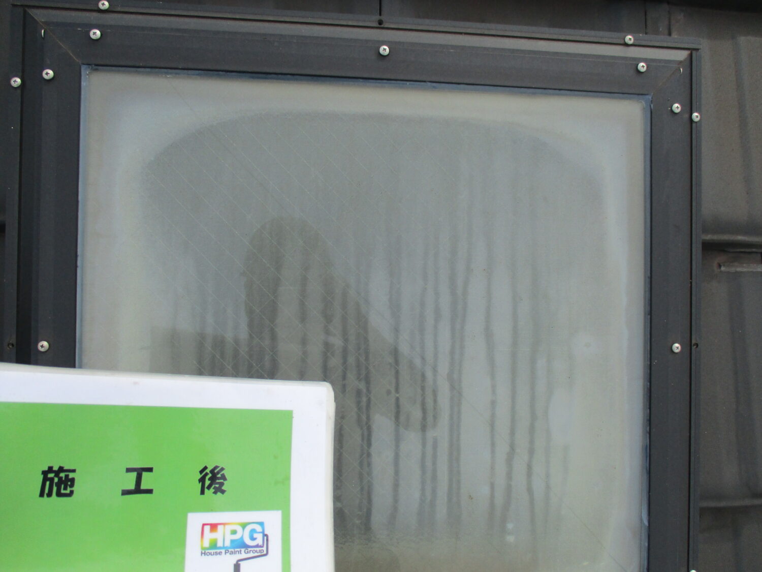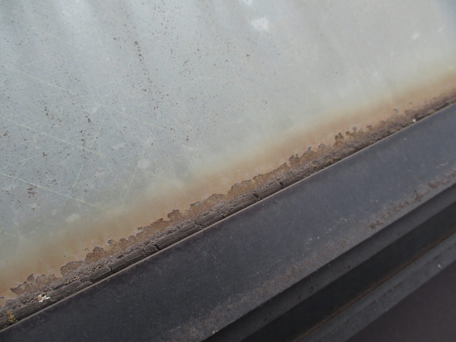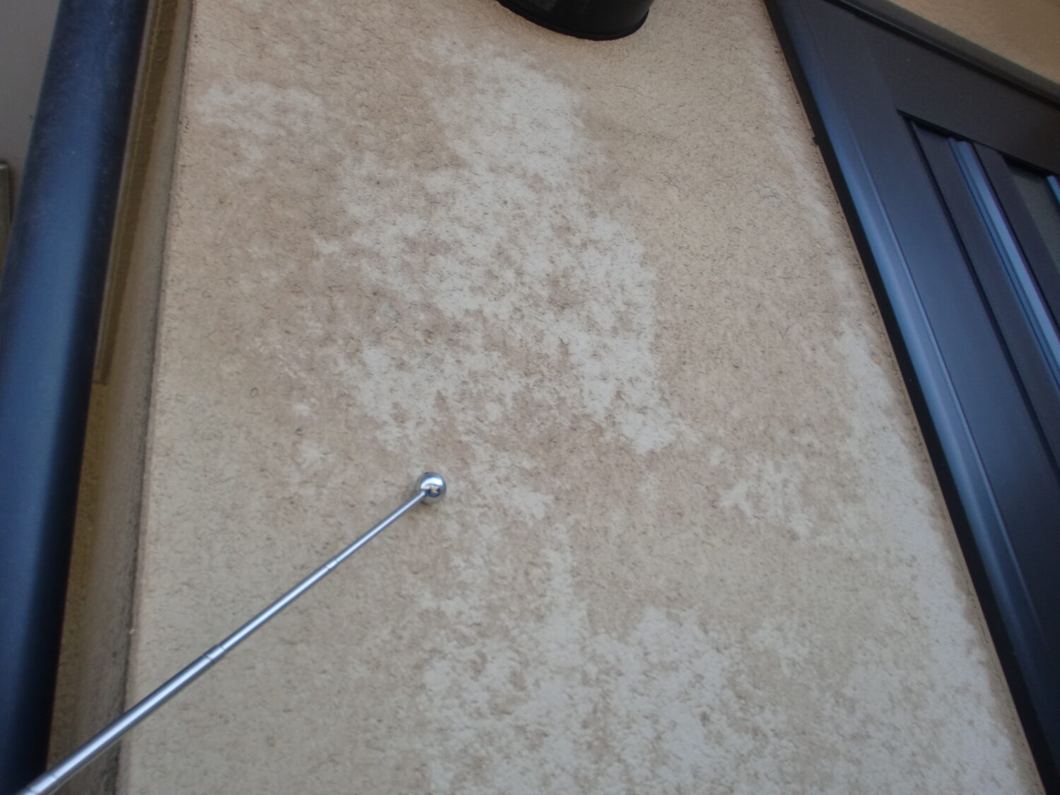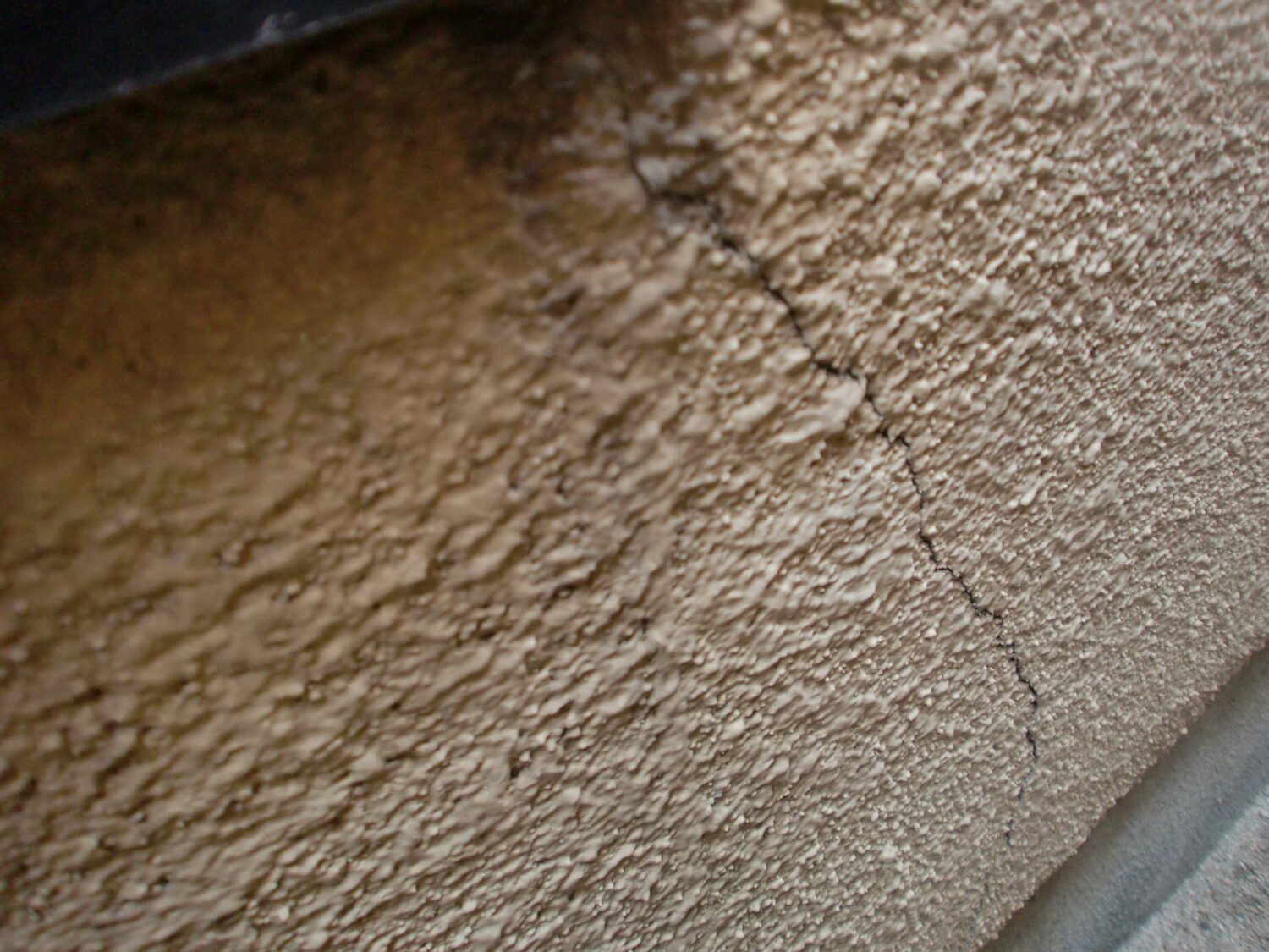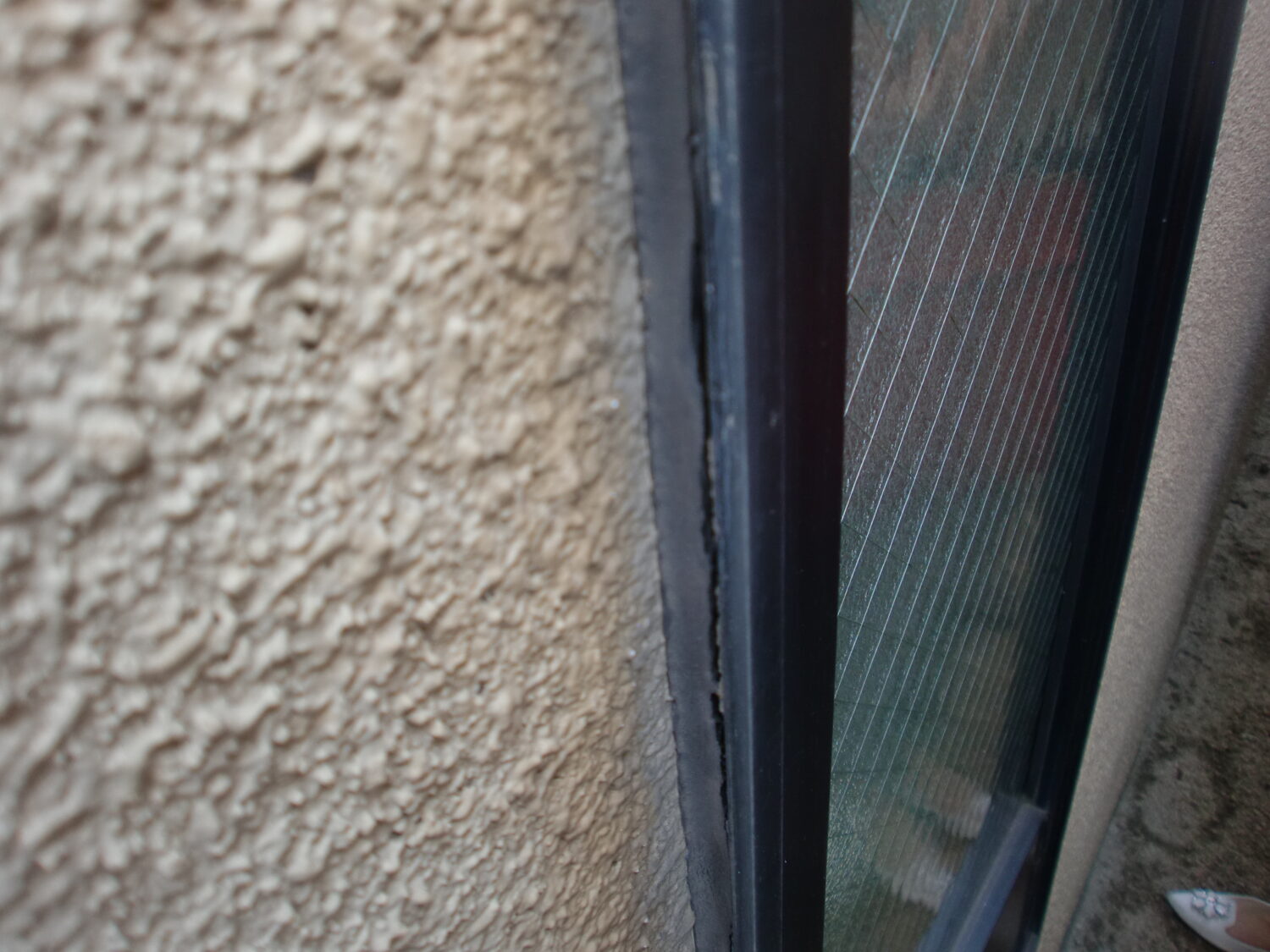 外壁の変色が気になりますね ひび割れも数か所見られました 窓枠のシーリングが劣化しています