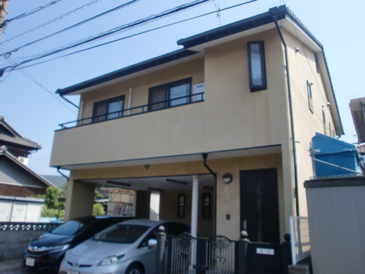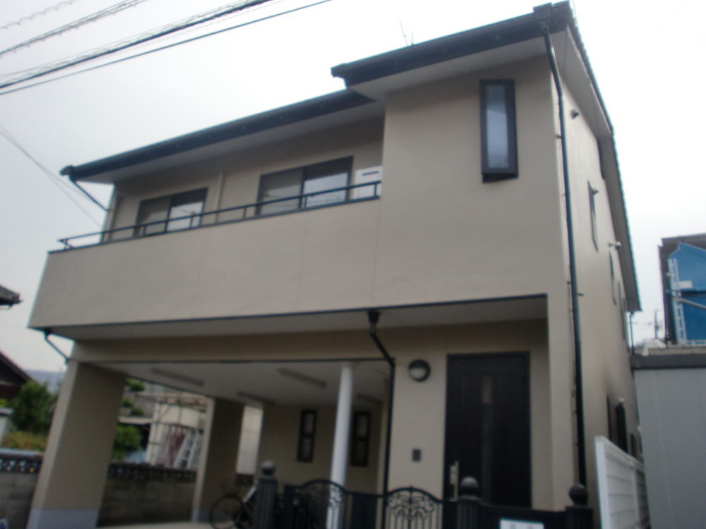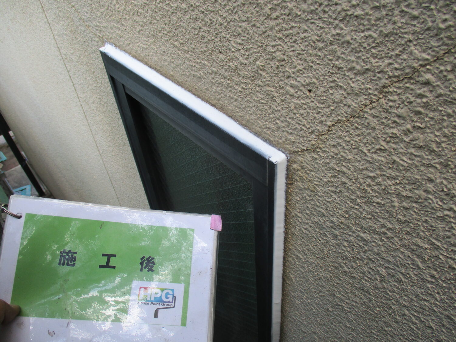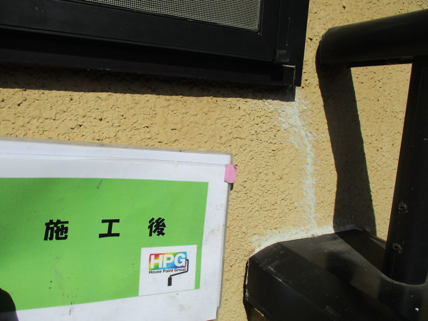 【施工前】 【施工後】 高圧洗浄で汚れを洗い流します 塗装前にひび割れ補修ですね 窓枠のシーリングも打ち替えます まずは1回目の下塗りです 丁寧に2層の下塗りを行う事で 仕上がりが格段に良くなります 中塗り→上塗りで完成です