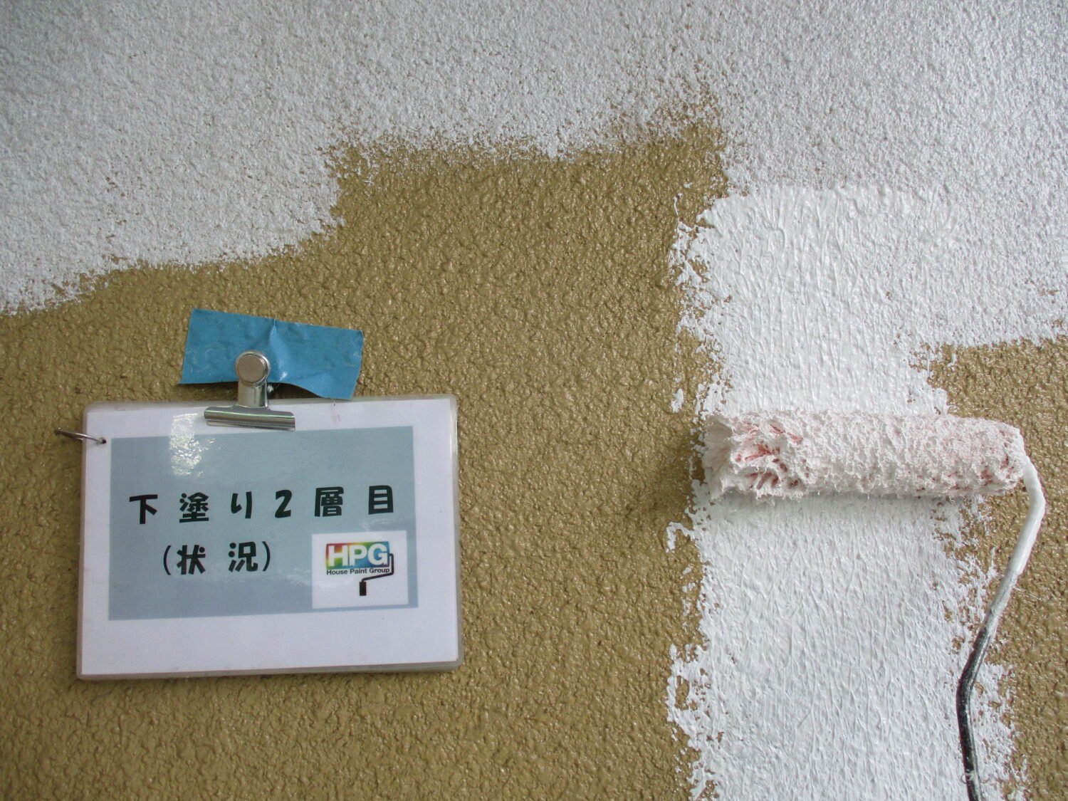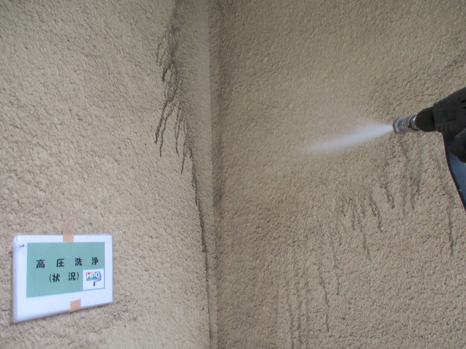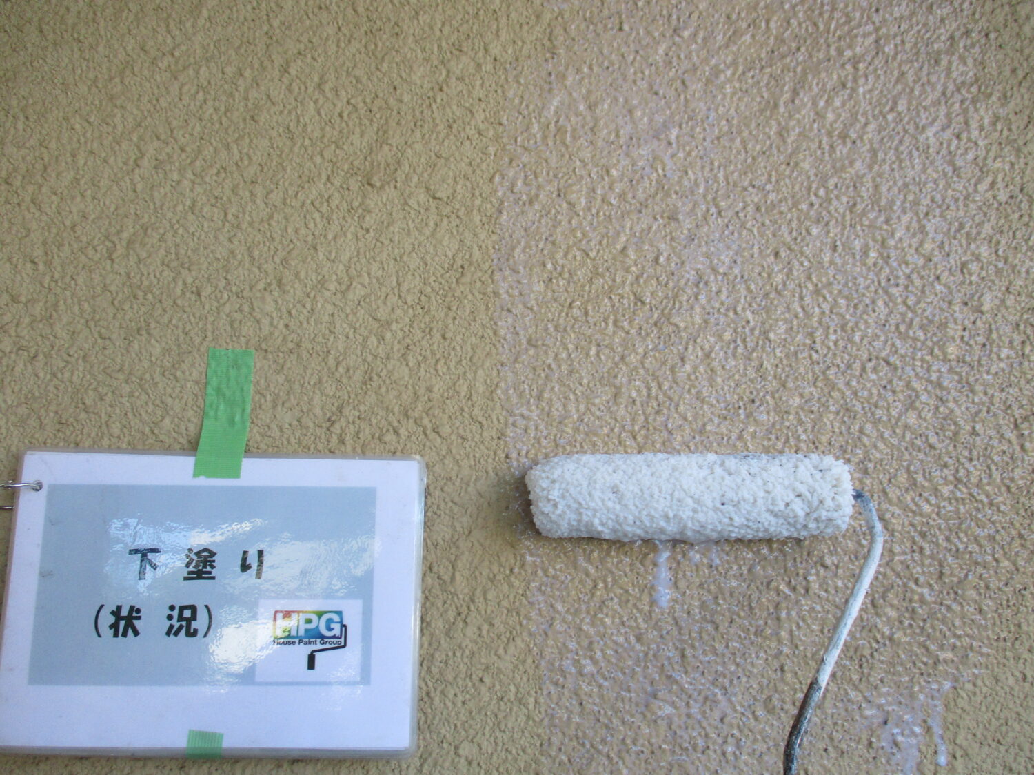 【施工前】 【施工後】 高圧洗浄で汚れを洗い流します 塗装前にひび割れ補修ですね 窓枠のシーリングも打ち替えます まずは1回目の下塗りです 丁寧に2層の下塗りを行う事で 仕上がりが格段に良くなります 中塗り→上塗りで完成です
