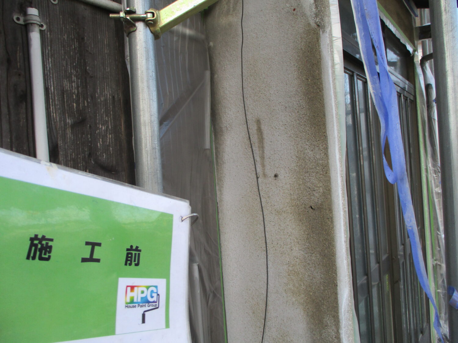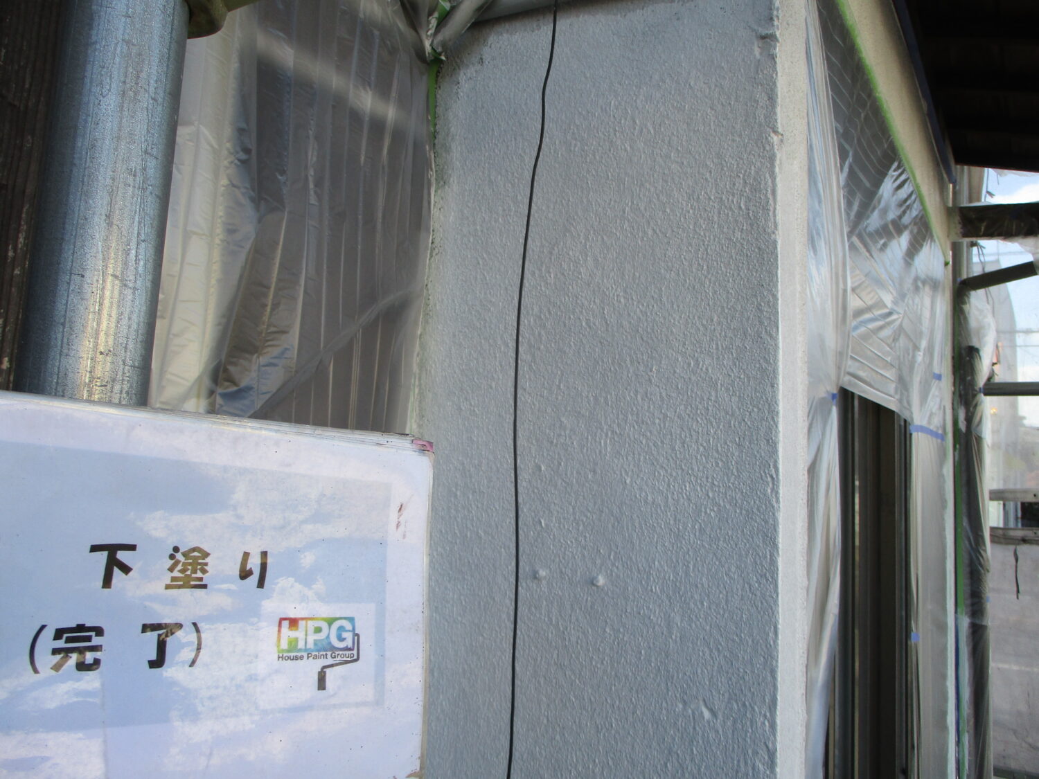 【施工前】 【施工後】 高圧洗浄で汚れを落とします 目地のひび割れ補修前です しっかりと補修しました 下塗りです 下塗りが完了しました 中塗り工程です 中塗り完了 更に上塗りで 綺麗に仕上がっています