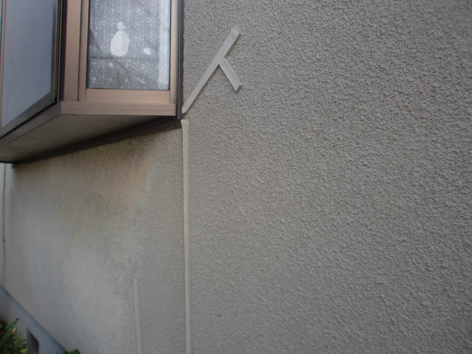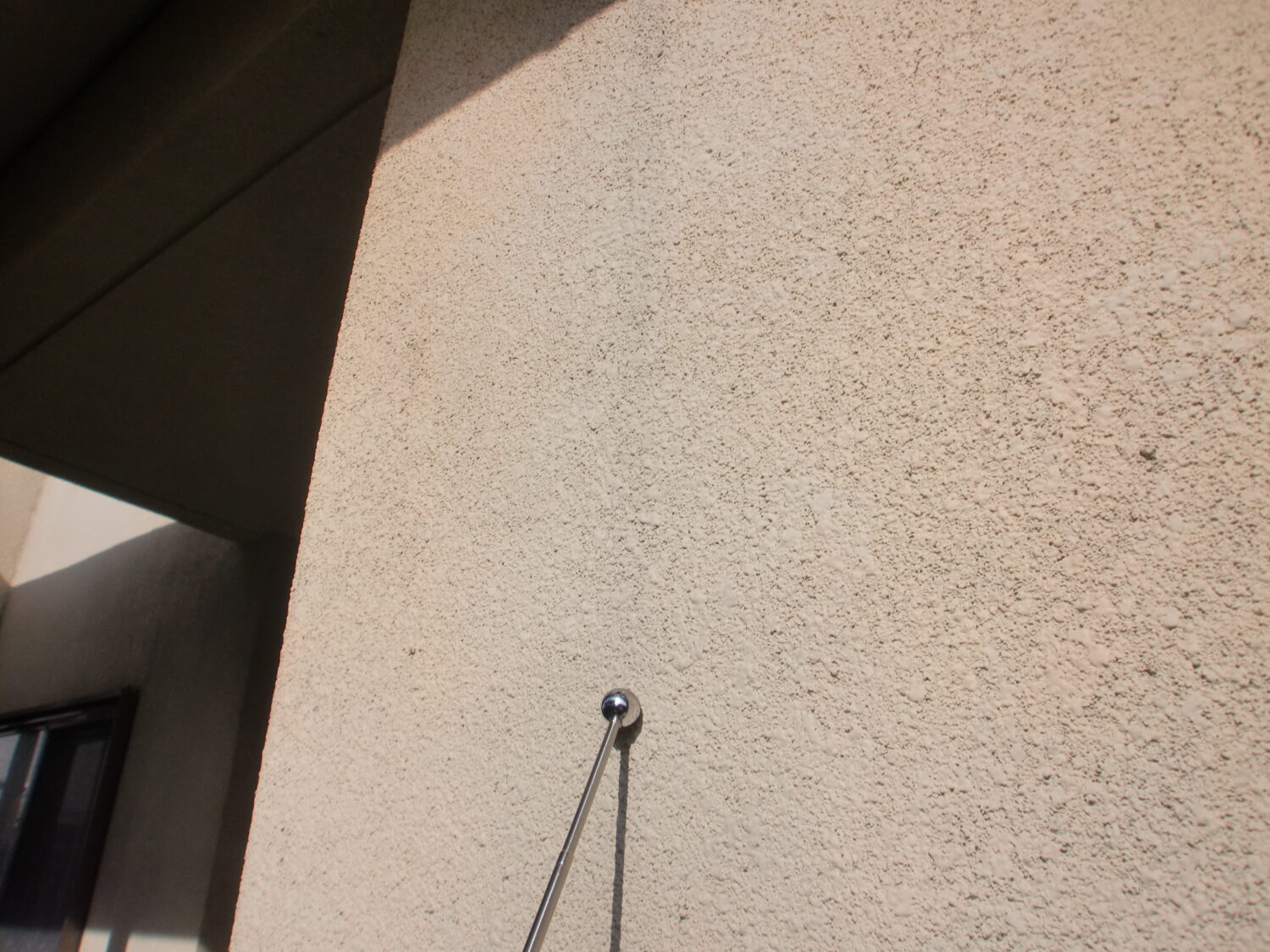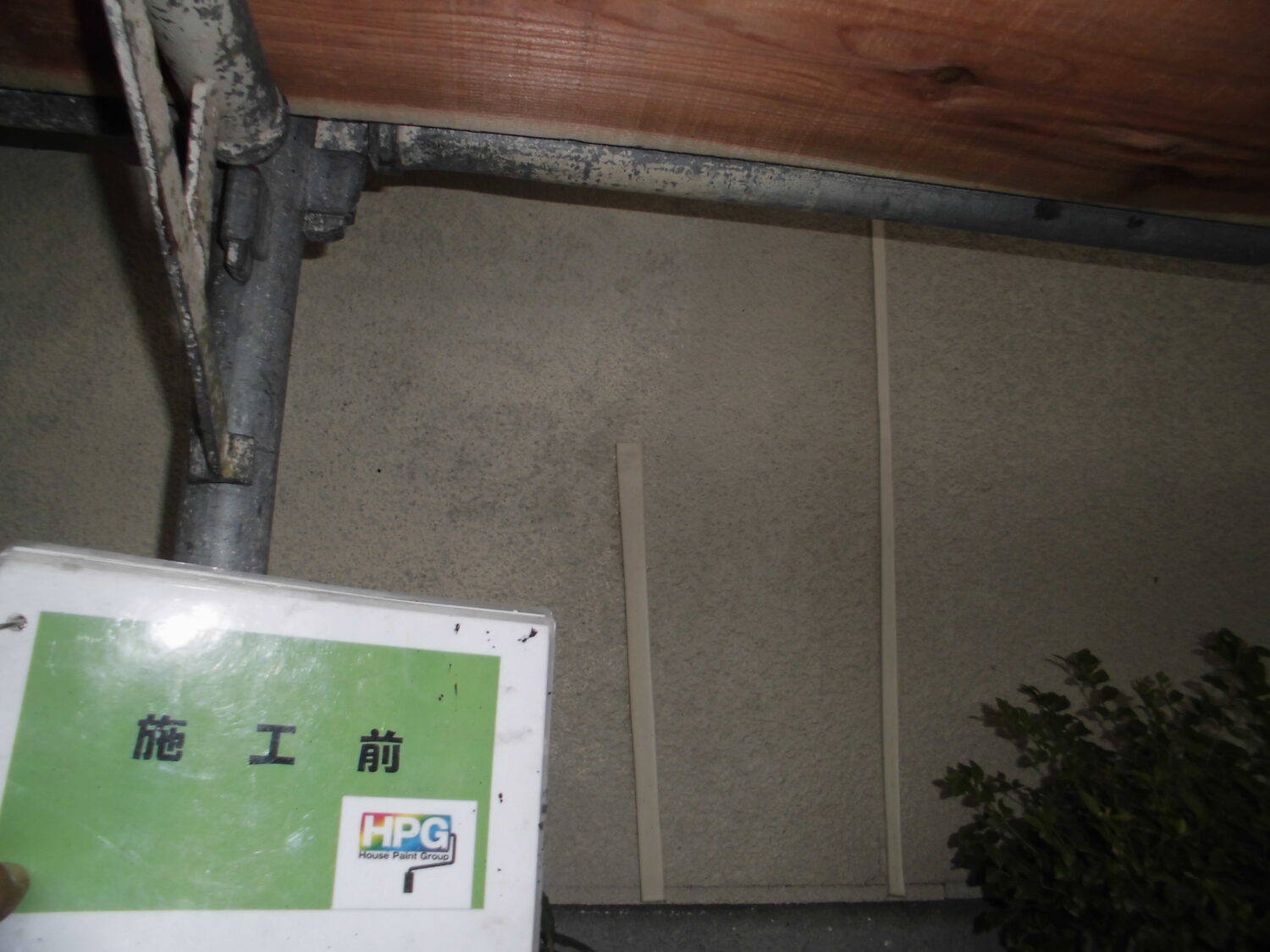かなり色褪ていますね 外壁の変色が気になります 既存の補修箇所は補修をし直します