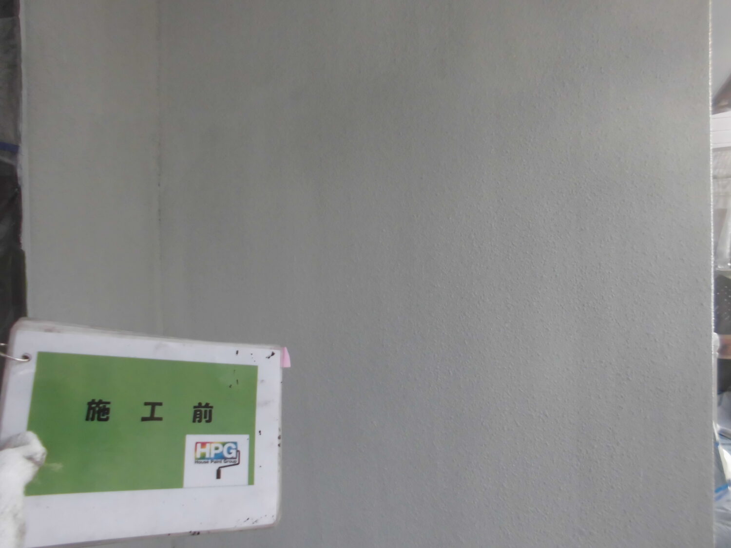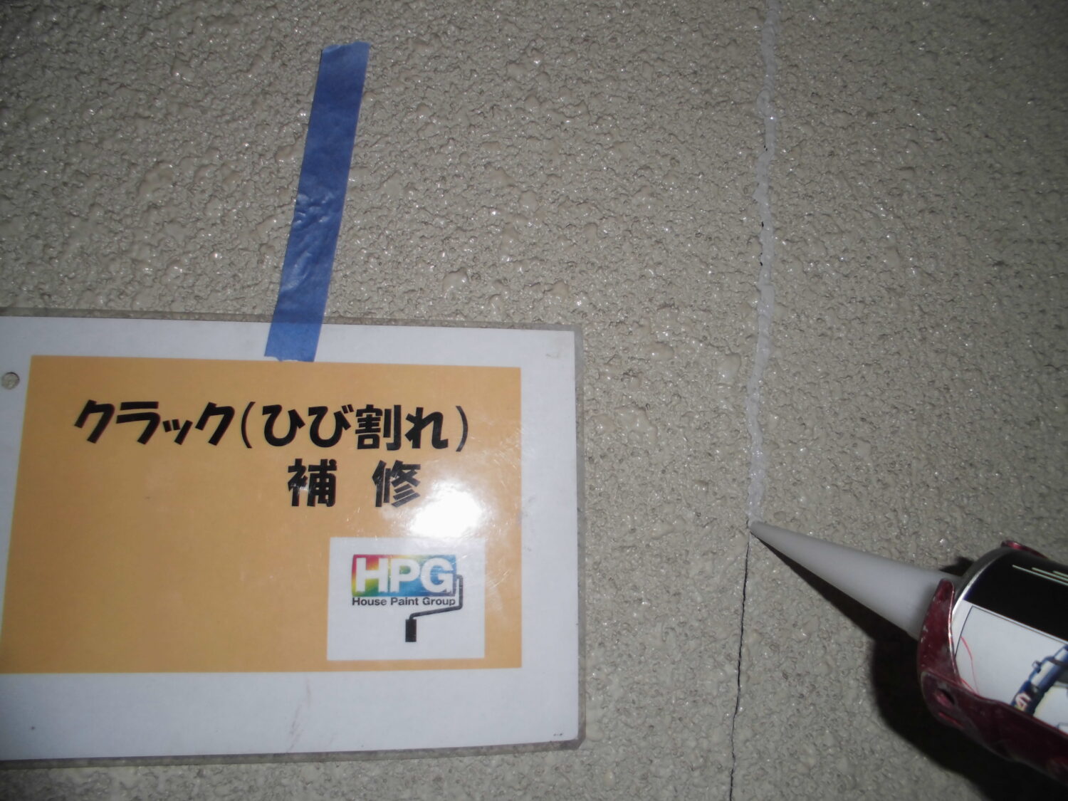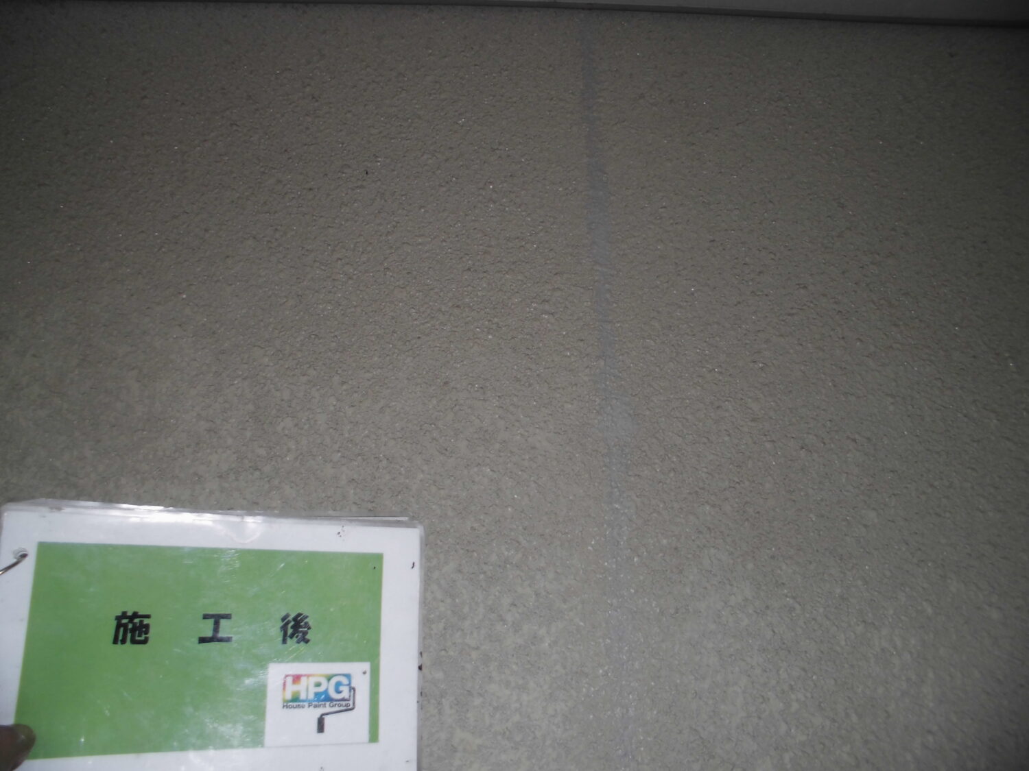 【施工前】 【施工後】 ひび割が入っています。 下処理後、シーリング材を充填し 表面を均一に均しました 古い補修痕も 再補修を行い素地を調整します 綺麗に補修出来ていますね 先ずは下塗り1層目です 下塗り1層目完了です 更に下塗りを重ねます 2層の下塗りが完了した状態です 中塗りで色が入ります 更に上塗りで完成です
