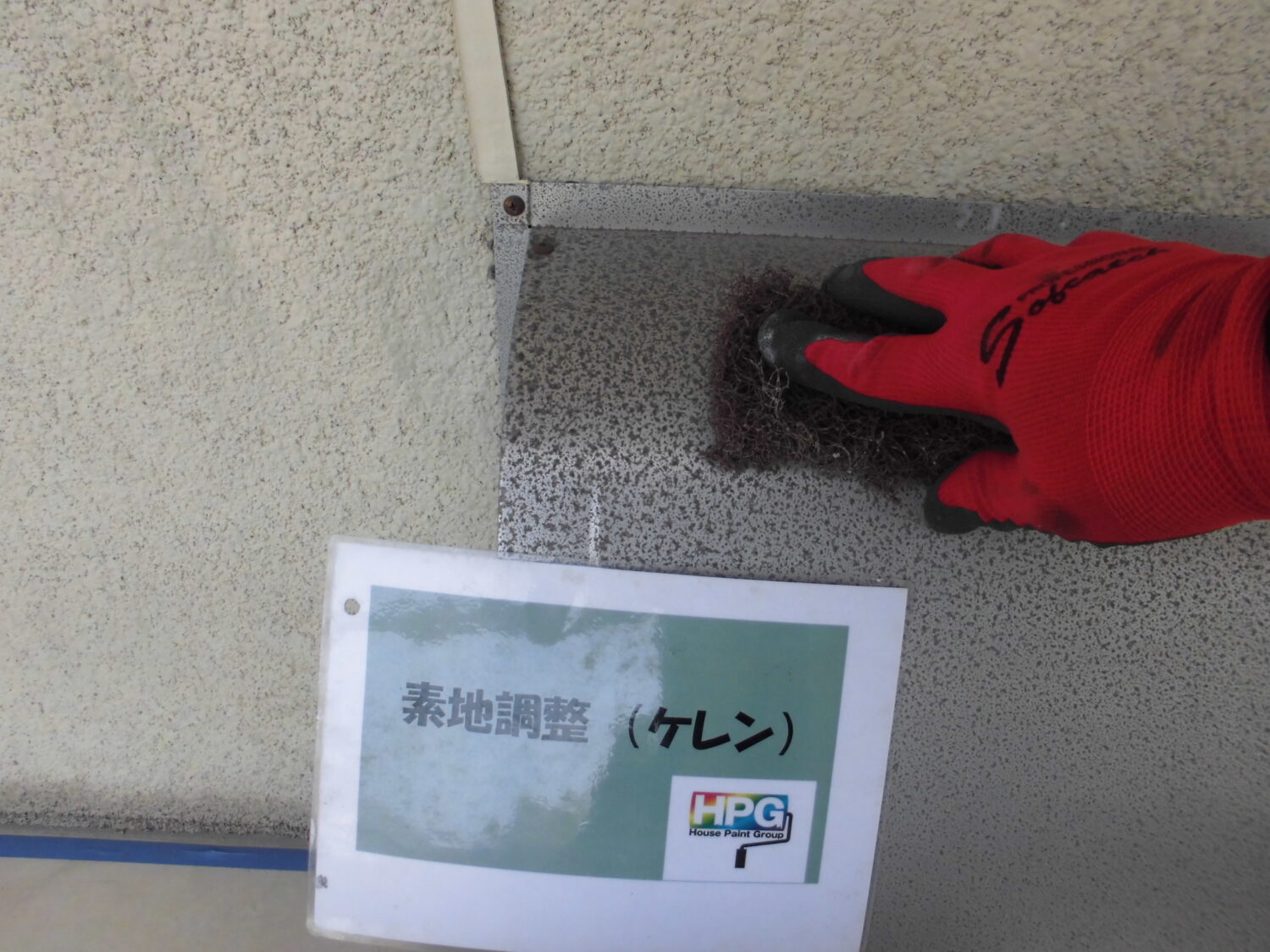 換気フード 塗装前に素地調整を行い 下塗りには錆止め塗料を塗布し 中塗り→上塗りで完成! ガラリ 素地調整状況 下塗り完了 中塗り→上塗り完了 屋根樋 汚泥が堆積しています 堆積物を取り除き 綺麗になりましたね