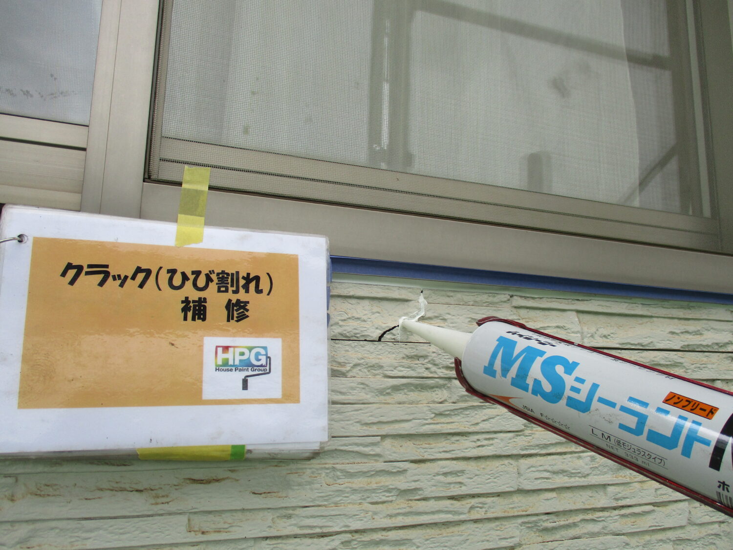 シーリングの劣化が見られます 紫外線等の影響で色褪せています 塗膜が劣化しています