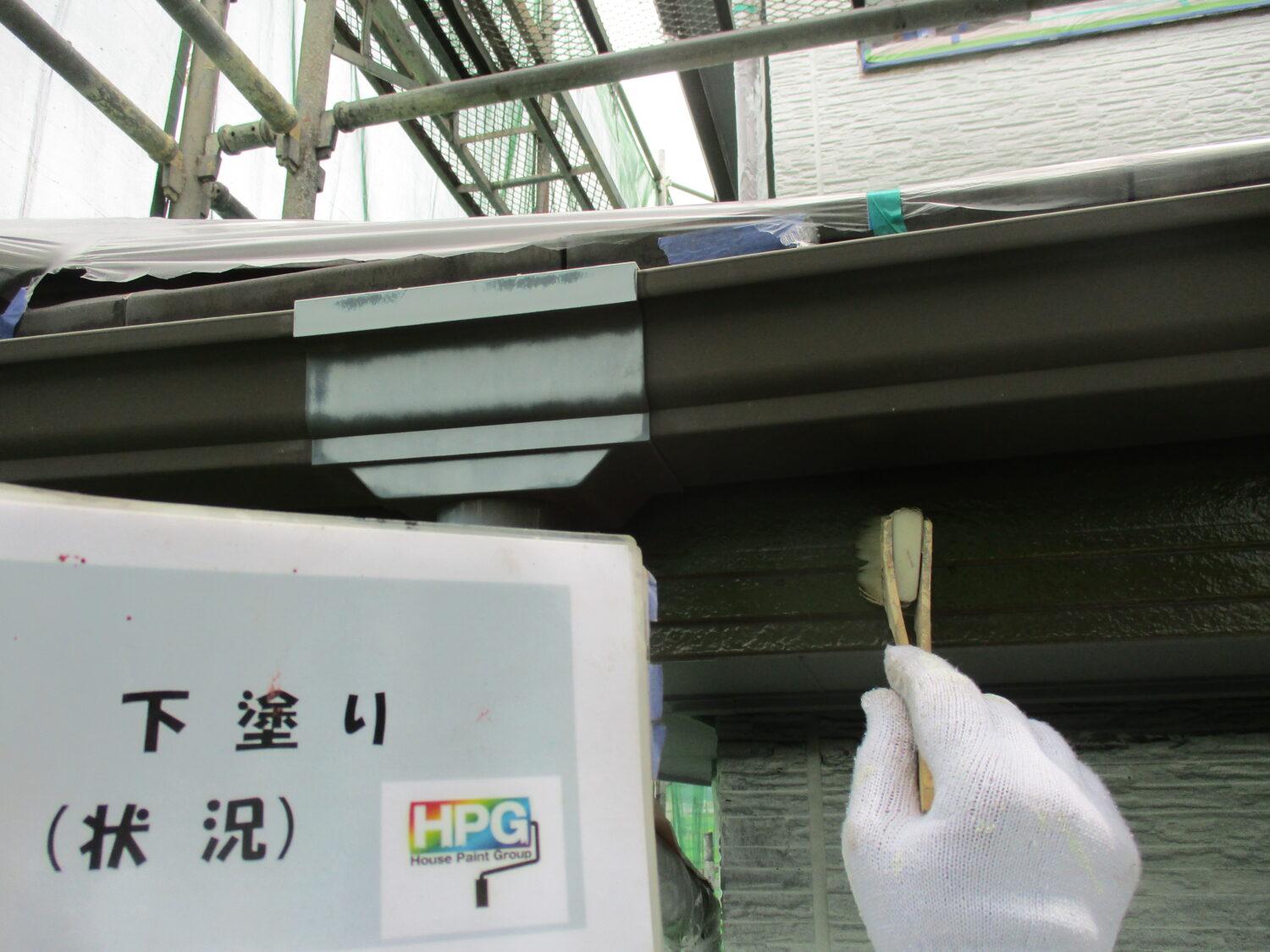 軒天 手ケレンで素地調整を行います 中塗りの様子です さらに上塗りを重ね綺麗に仕上がっています 水切り 手ケレンで素地調整を行います 下塗りに錆止めを使用します 中塗り→上塗りで綺麗に仕上がっています 鼻隠し 手ケレンで素地調整を行います 下塗りの様子です 中塗り→上塗りで綺麗に仕上がっています 樋 手ケレンで素地調整を行います 下塗りには錆止めを使用します 中塗り→上塗りで綺麗に仕上がっています ベランダFRP 丁寧に素地調整を行います 余分な油分をふき取ります 中塗り→上塗りで綺麗に仕上がっています