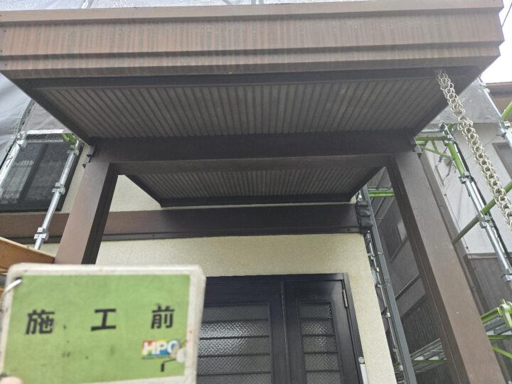 今回は、外壁など、広範囲にわたる塗装作業になりますが、弊社のスタッフが協力して効率よく、かつ丁寧に作業を進めていきました。