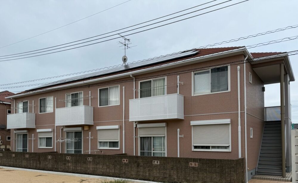 今回の外壁塗装は、倉敷市内で2棟並びのアパートを同時に施工させていただく大規模工事でした。オーナー様が弊社ホームページをご覧くださり、検索してお問い合わせいただいたことがご縁の始まりです。