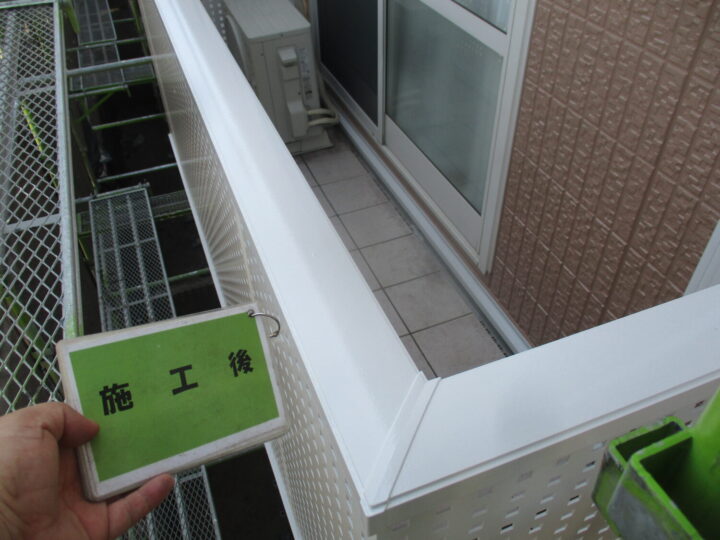 施工中は入居者様への配慮を最優先に進めました。足場架設時の安全対策、高圧洗浄時の飛散防止対策、洗濯物干しの制限期間のご案内など、事前説明を徹底。結果として大きなトラブルもなく、スムーズに外壁塗装を完了することができました。