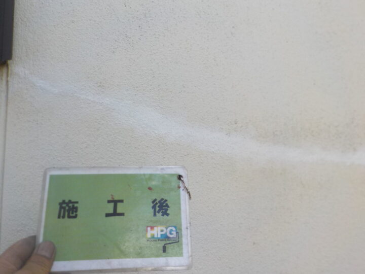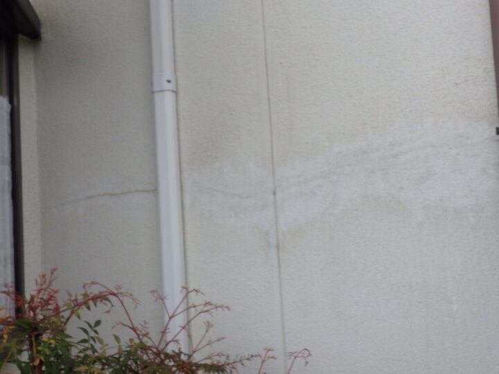 防水性が低下しており、雨水の侵入リスクがある状態でした。チョーキング現象の発生