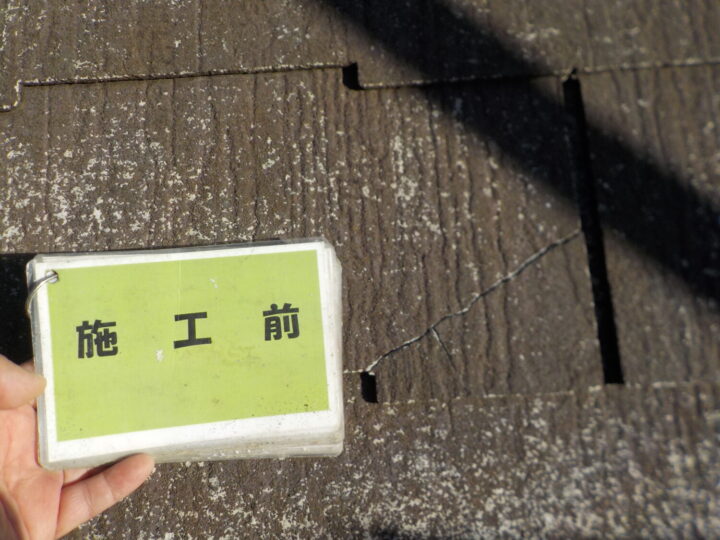 塗装前にひび割れを補修します