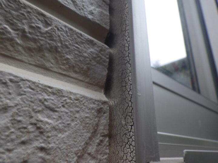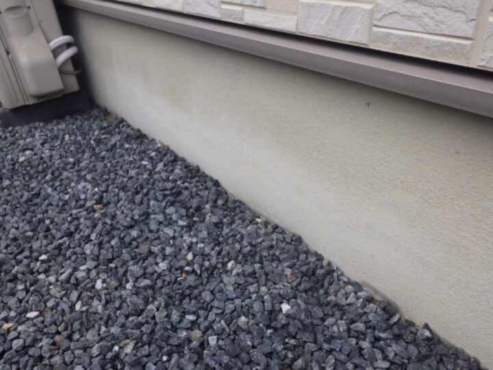 現地調査では、外壁やサッシまわりに細かなひび割れ、基礎部分には経年劣化による変色が確認できました。