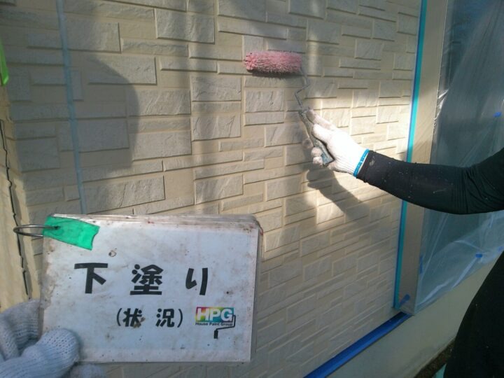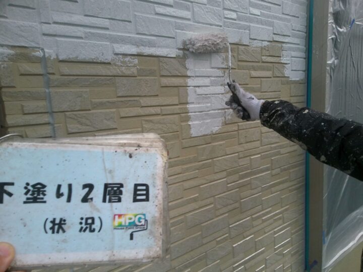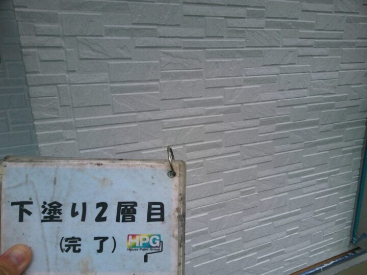 下塗りは2層施工とし、その後中塗り・上塗りを重ねることで、耐久性と美観の両立を図っています。