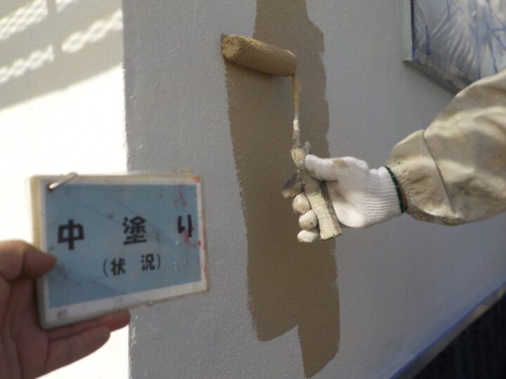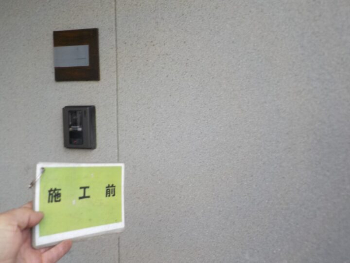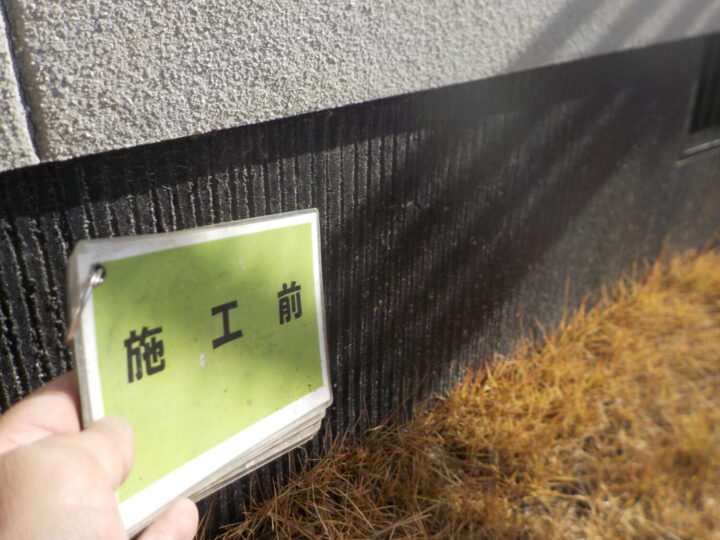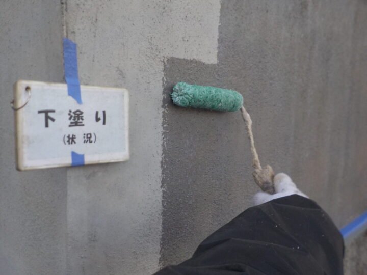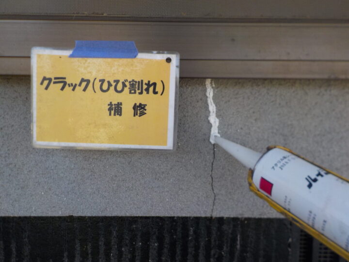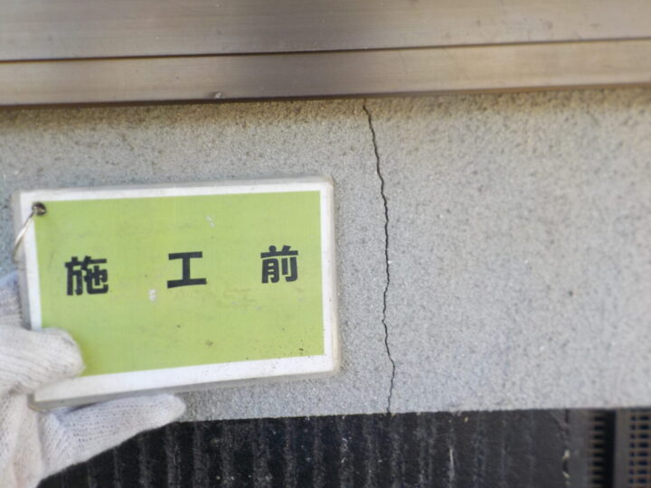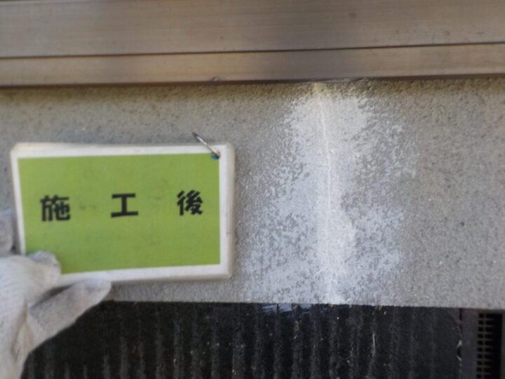 施工前には高圧洗浄を行い、長年蓄積した汚れや旧塗膜をしっかりと除去しました。汚れを十分に落とすことで、塗料の密着性が高まり、仕上がりと耐久性に大きく差が出ます。その後、外壁のひび割れ補修を丁寧に行い、下地の状態を整えたうえで塗装工程へと進みました。