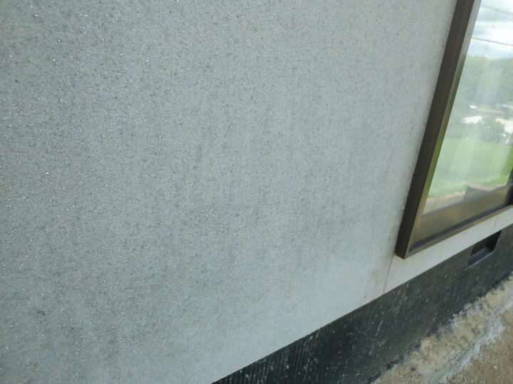 現地調査では、外壁全体に経年劣化による色あせや汚れが見受けられ、特にひび割れが複数箇所確認できました。外壁のひび割れは、放置すると雨水の侵入や内部劣化につながる恐れがあるため、お早目のメンテナンスをおすすめしております。